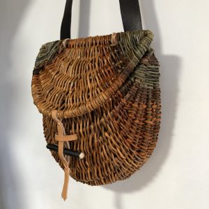 Clare Shilvock Warwickshire Willow D-shaped frame basket backpack over shoulder handbag