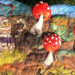 Eve Marshall has been working creatively with wool for over eighteen years. She uses a variety of wet and needle felting techniques to create her pictures. Eve is inspired by the countryside and her wacky brain.