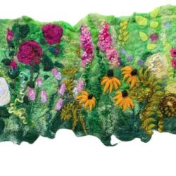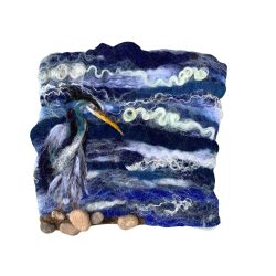 When creating each piece she usually adds over fifty layers to give depth, texture and realism to the design during the Wet felting stage and once dry she adds further detail during the Dry felting stage by needle felting animals, birds or flowers which take longer than the Wet felting.